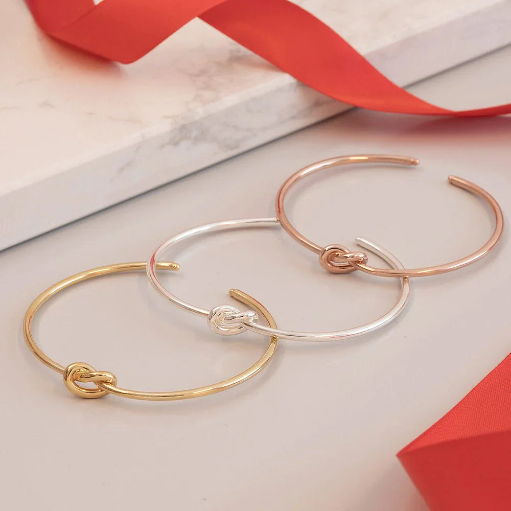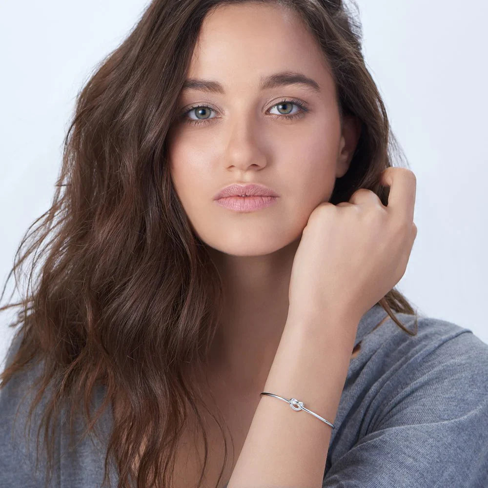 This Sterling Silver bracelet takes a traditional symbol and mixes it with modern design to create a unique piece of jewelry. Knot motif traditionally represents the love of two individuals. Some of us interpret the knot as love for one's self. Some of us just really like the design...